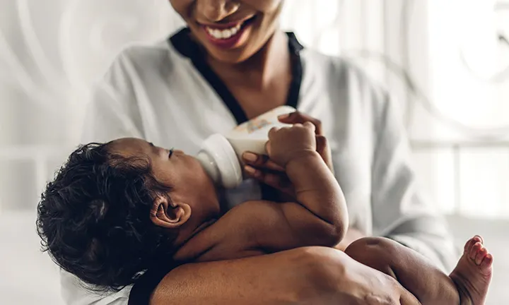 Ob Fläschchen oder Muttermilch: Du gibst alles, um deinem Kind die bestmögliche Ernährung zu bieten – und das spürt es auch! Viel Körperkontakt und eine enge Bindung sind auch beim Füttern mit Pre-Nahrung möglich.