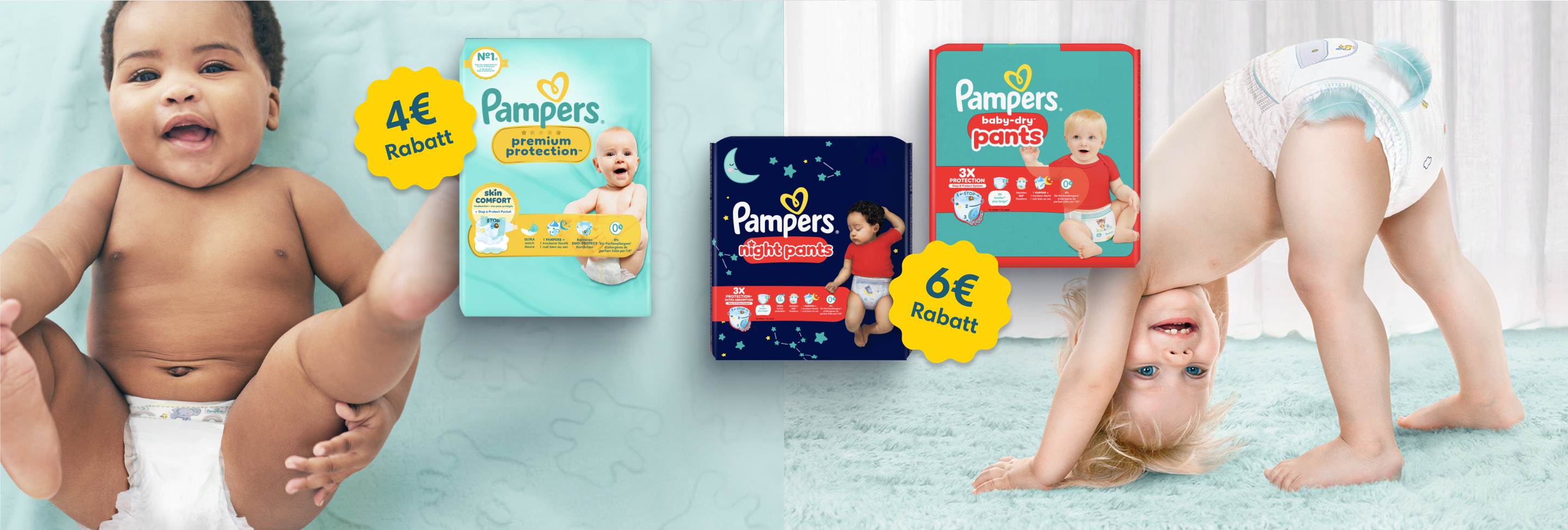 Für jedes Baby gibt es die passende Windel. Pampers Premium Protection™ schützen genauso gut und sind extra weich, perfekt für die empfindliche Haut von Neugeborenen. Pampers Pants sind blitzschnell angezogen und ausgezogen, flexibel und zuverlässig auslaufsicher – ideal für kleine Wirbelwinde. Und jetzt könnt ihr unsere Windeln direkt testen: Wählt einfach den Coupon, der zu euch passt!